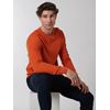 Ensfarget genser i ren 100% bomull med lekker struktur og ribbestrikket rund hals. Den finstrikkede genseren har liten emaljert logo nede til venstre og ribbestrikkede vrangborder. Modellen er 187 cm høy og buker str L.