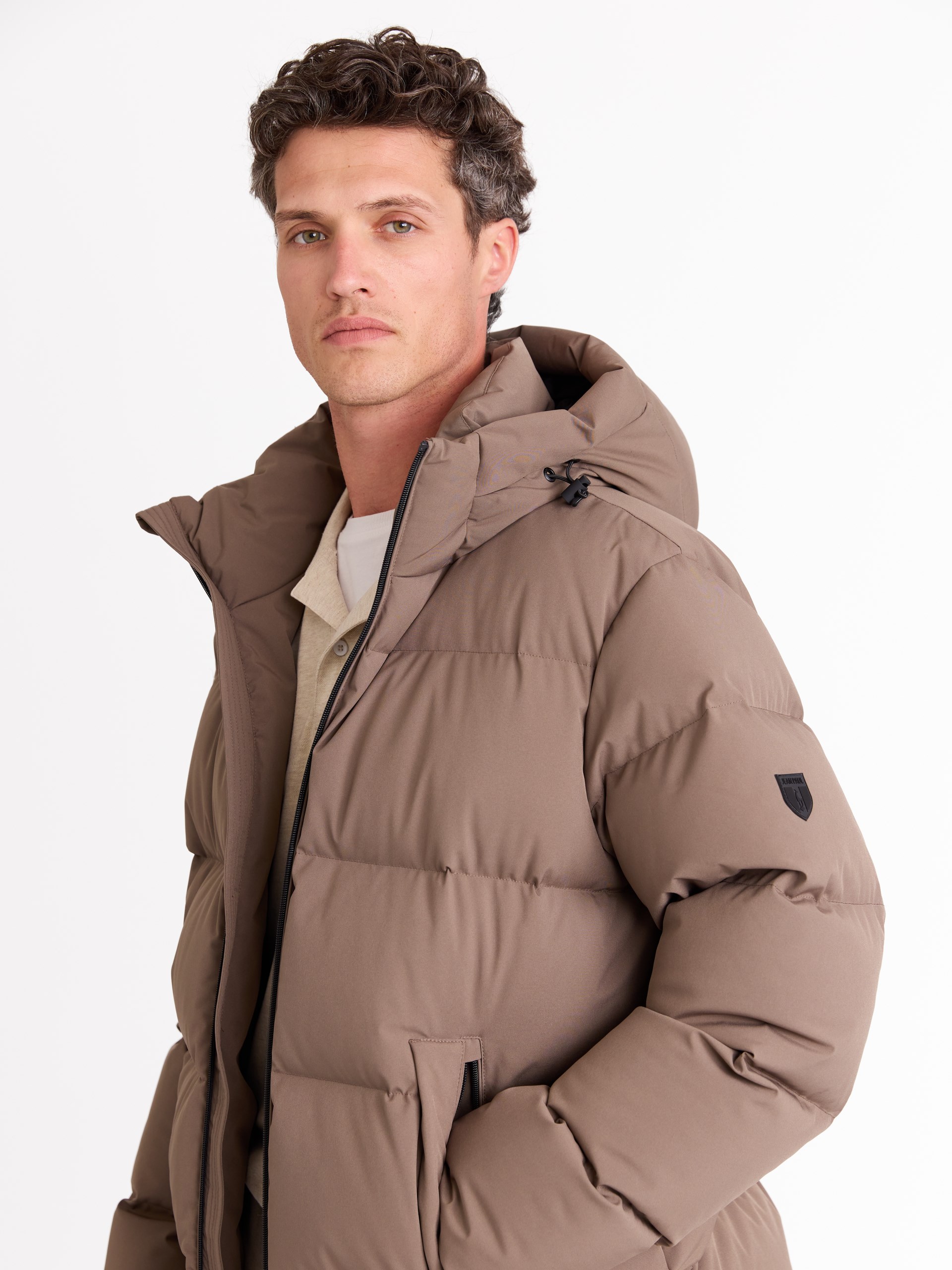 Modellen er 189 cm høy og har på seg str M.Colorado dunjakke