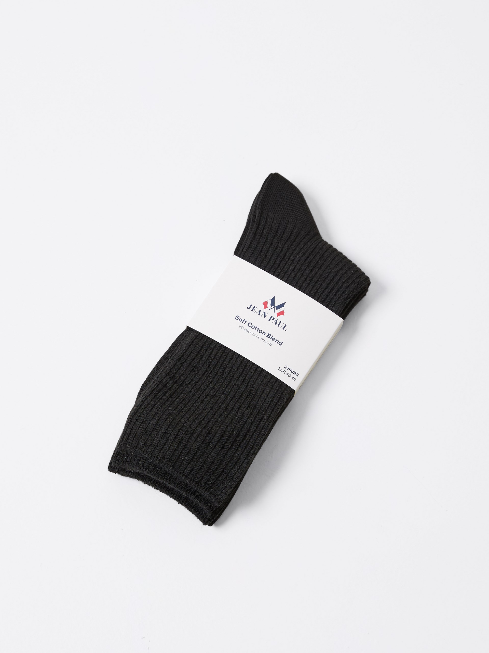 Ribbet sokk i bomullsblanding. Sokken er ribbestrikket i hele skaftet slik at man unngår stram vrangbord øverst.