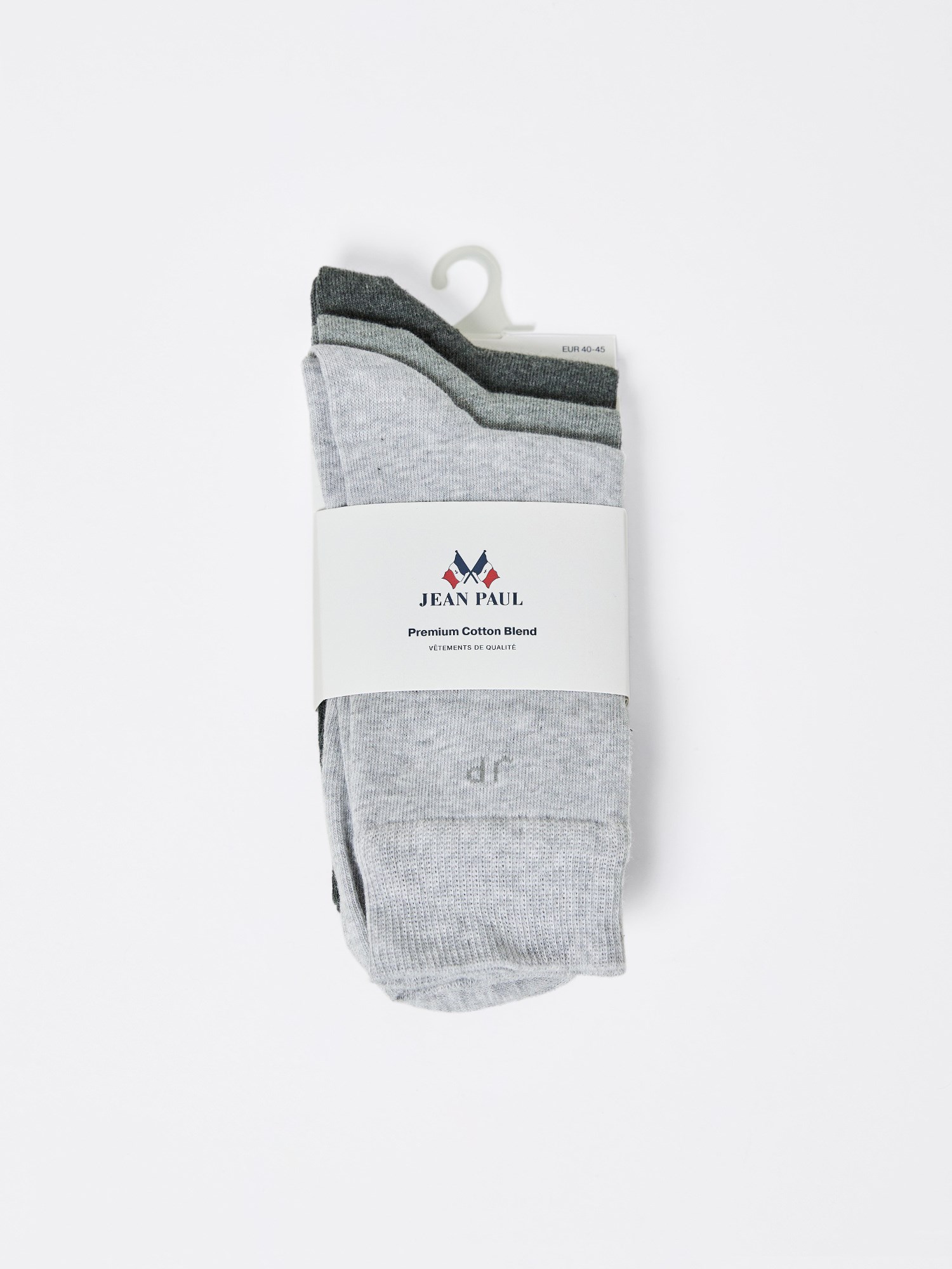 3pk ensfargede herresokker i komfortabel bomullsblanding med logo.