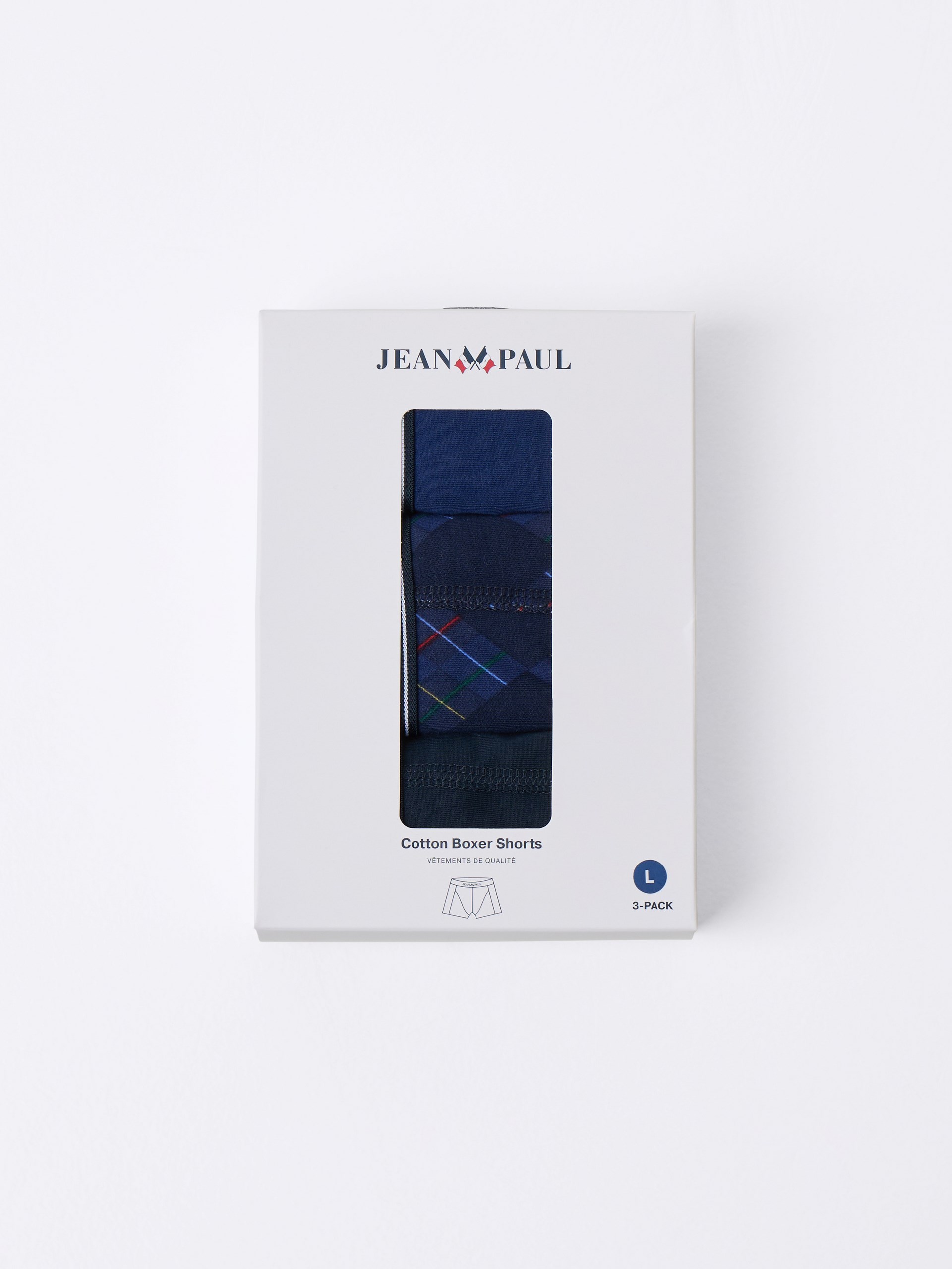 3 pack boksershorts i elastisk bambus/bomullsblanding med stretch for god komfort. Bokseren kommer med to ensfargede og en mønstret variant og har behagelig strikk i livet med logo.