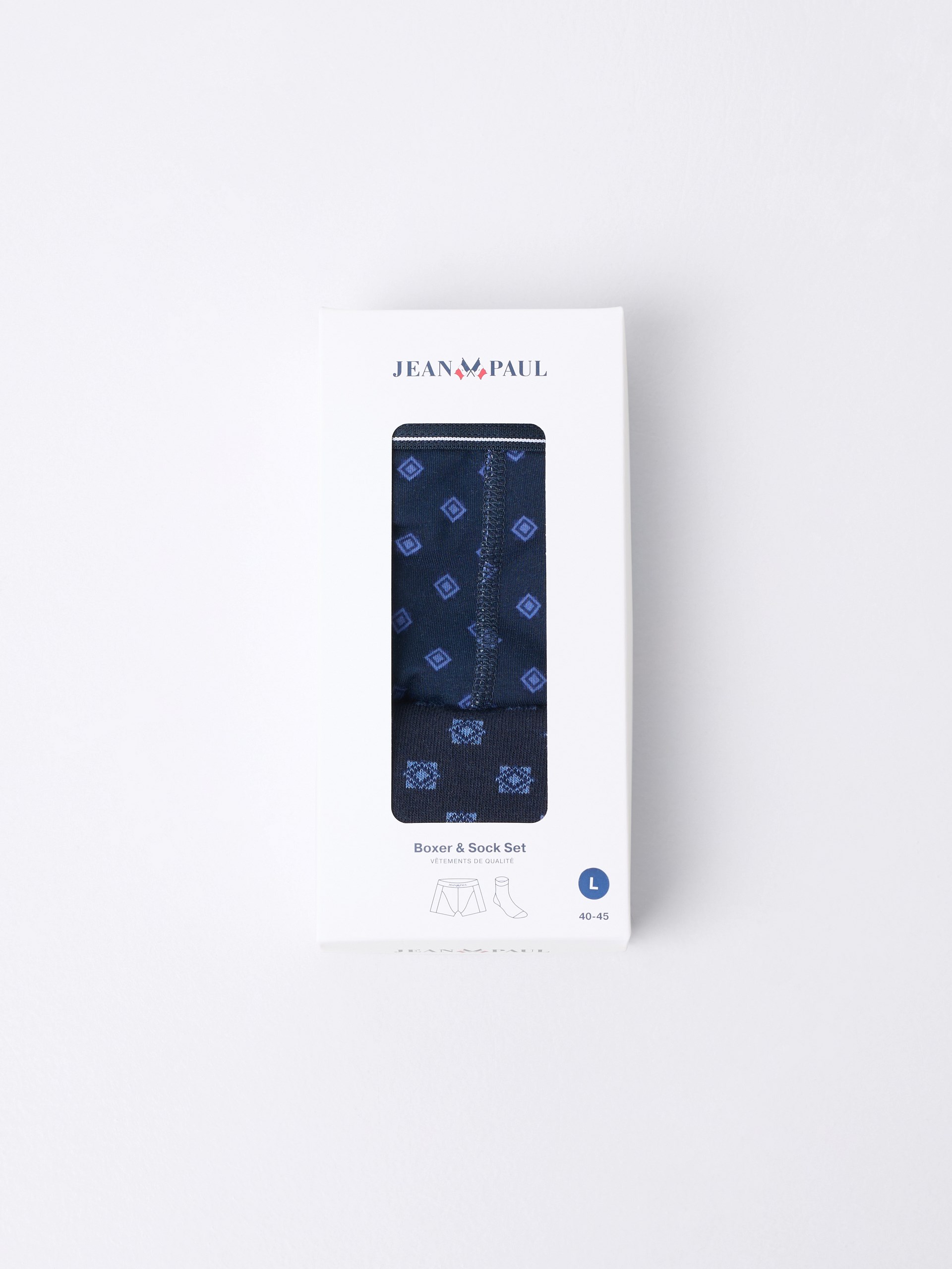 Gavesett med boxer og sokker. Kommer i to varianter, en med julemotiv og en med klassisk mønster. Leveres i lekker gaveeske