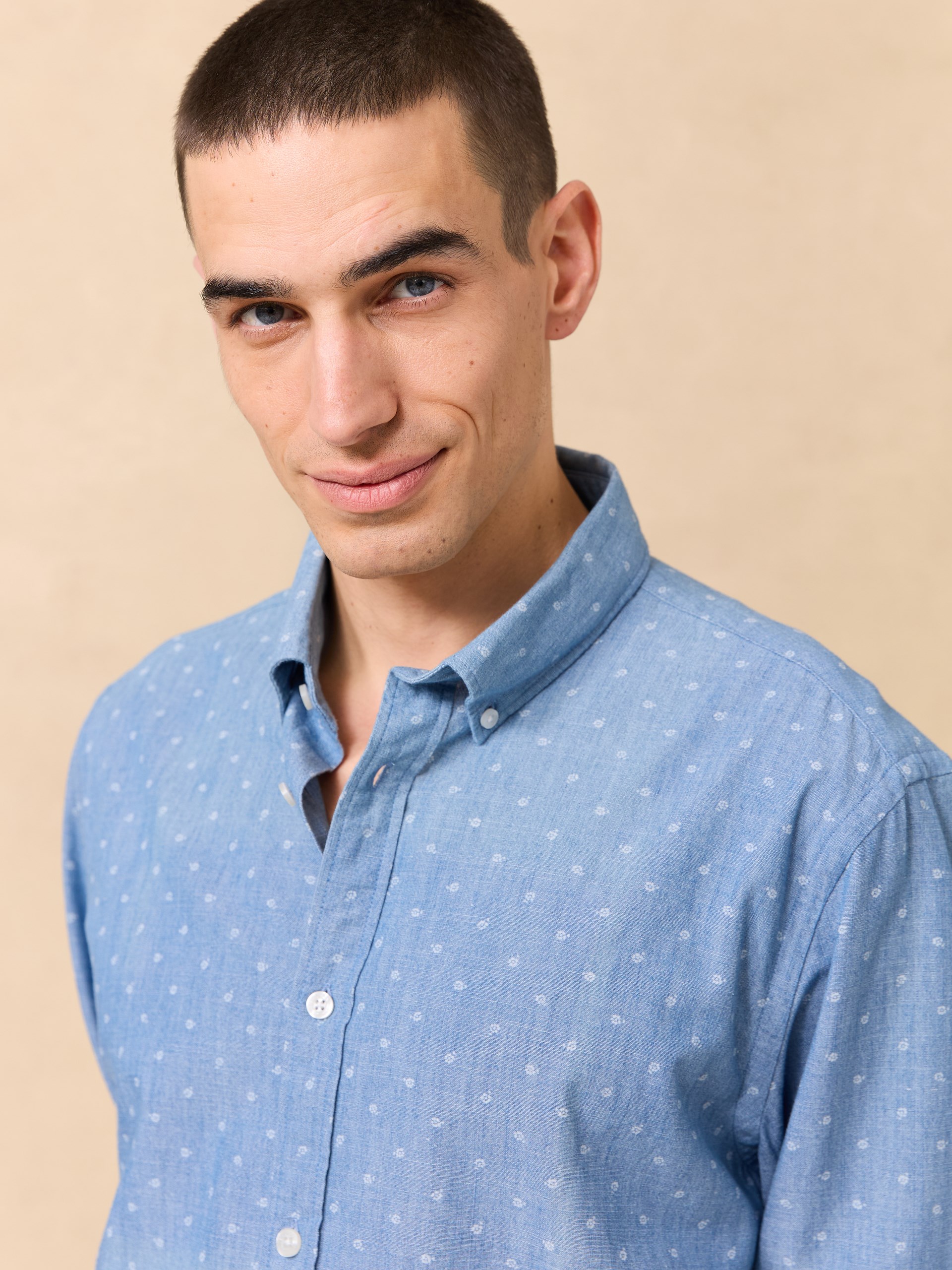 Langermet skjorte i printet indigo chambray i myk bomull