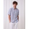Komfortabel kortermet skjorte i stripet lin. Skjorten har normal krage, bærestykke bak, knappestolpe med lyse knapper og regulær passform.