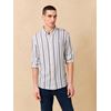 Stripet skjorte i behagelig blanding av lin og viskose. Skjorten har button down krage, knappestolpe med lyse knapper, innvendig kontraststoff i nakke og mansjett, bærestykke bak og regulerbar mansjett. Lyst logobroderi på brystet og regulær passform.