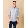 Sommerlig skjorte i mangefargede striper laget i behagelig lin og viskose blanding. Skjorten har buttondown krage, lyse knapper med mørk knappetråd, logobroderi på brystet og regulerbar mansjett. Regulær passform