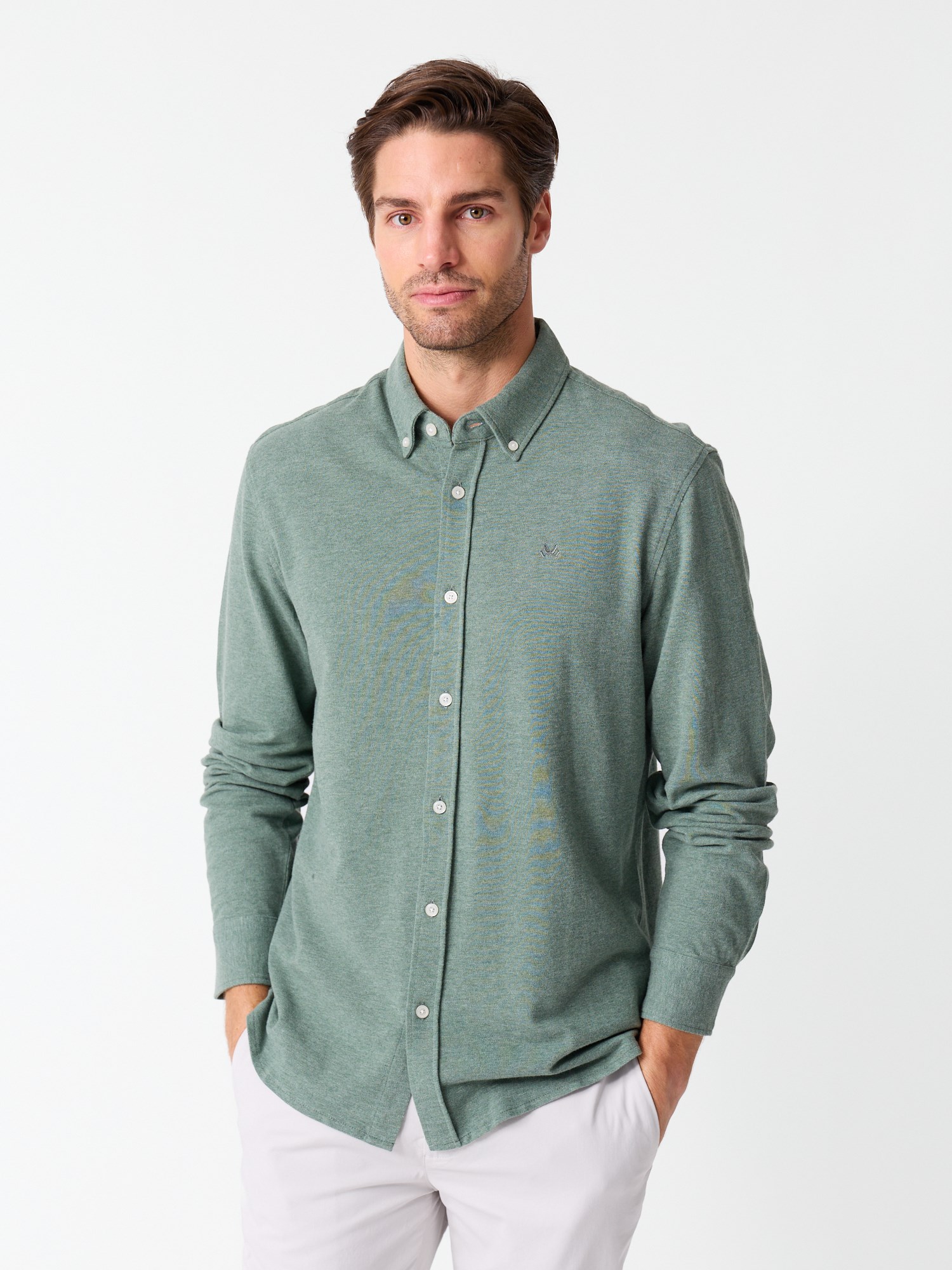 Jerseyskjorte i myk piquekvalitet med kontrast piping i nakken.