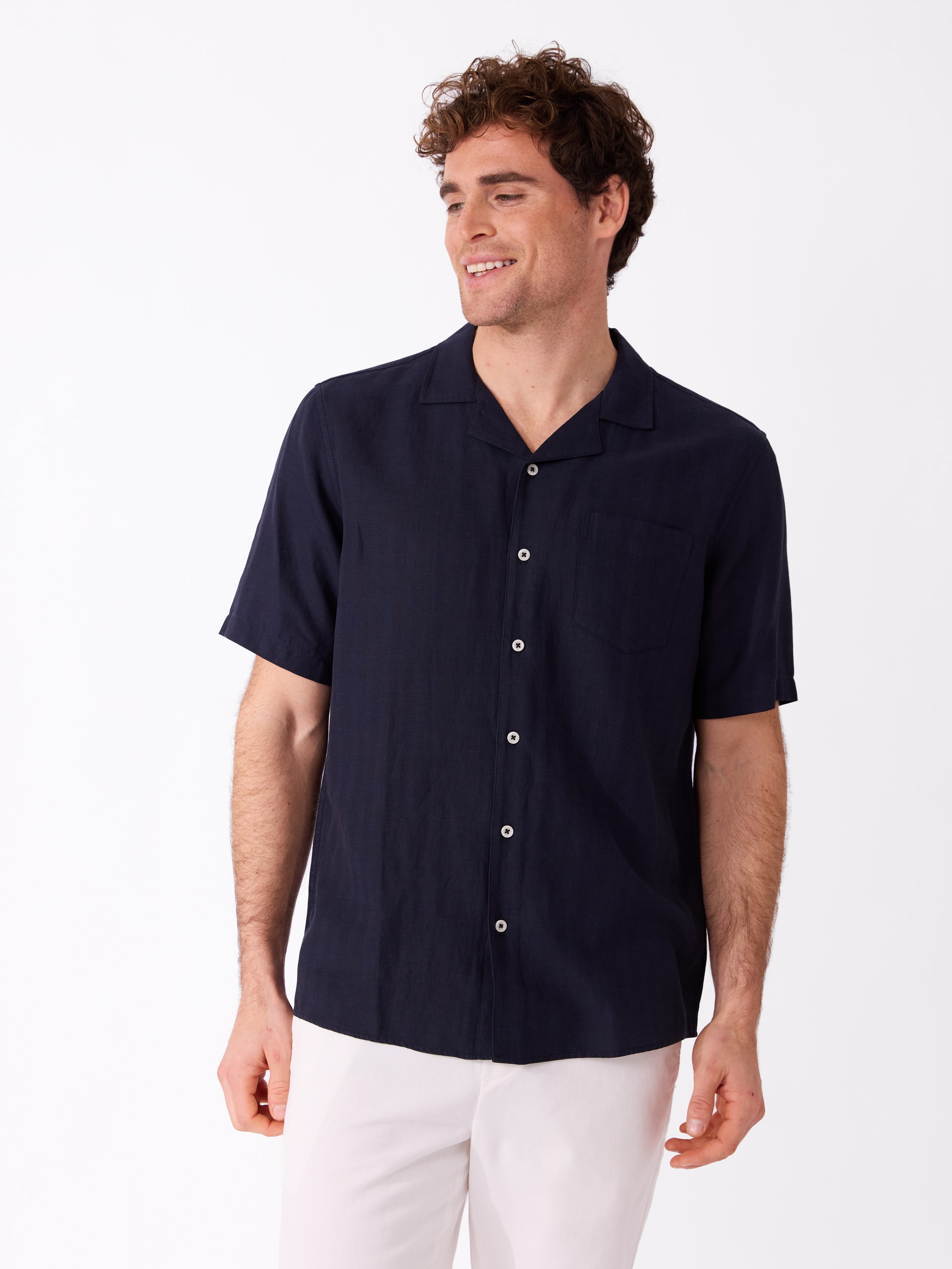 Kortermet skjorte i behagelig blanding av lyocell, lin og bomull