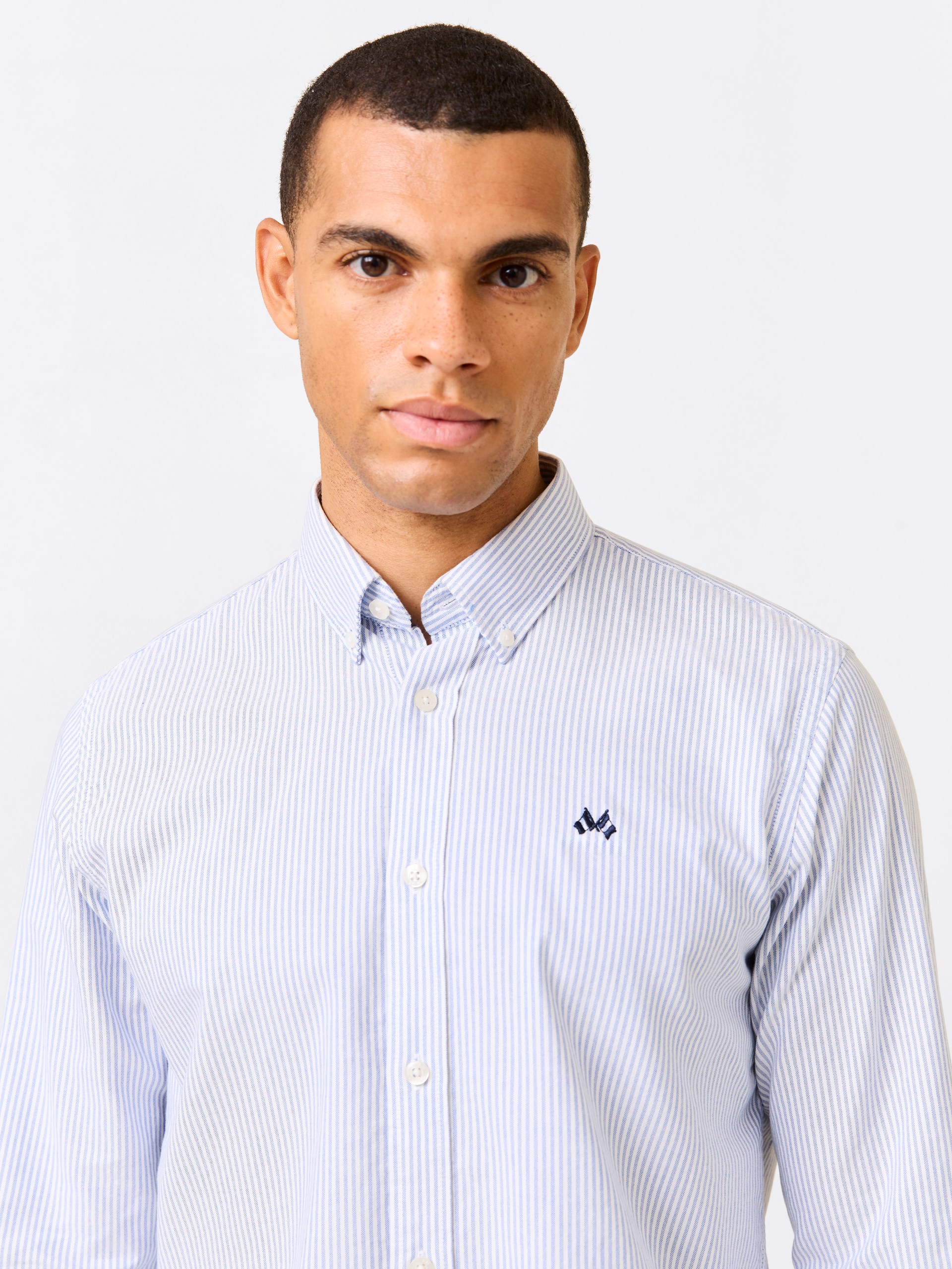 Klassisk stripete Oxford skjorte med lange ermer og regulerbar mansjett med knapp og splitt på ermet. Skjorten lukkes i front med knapper. Brodert logo på venstre bryst.