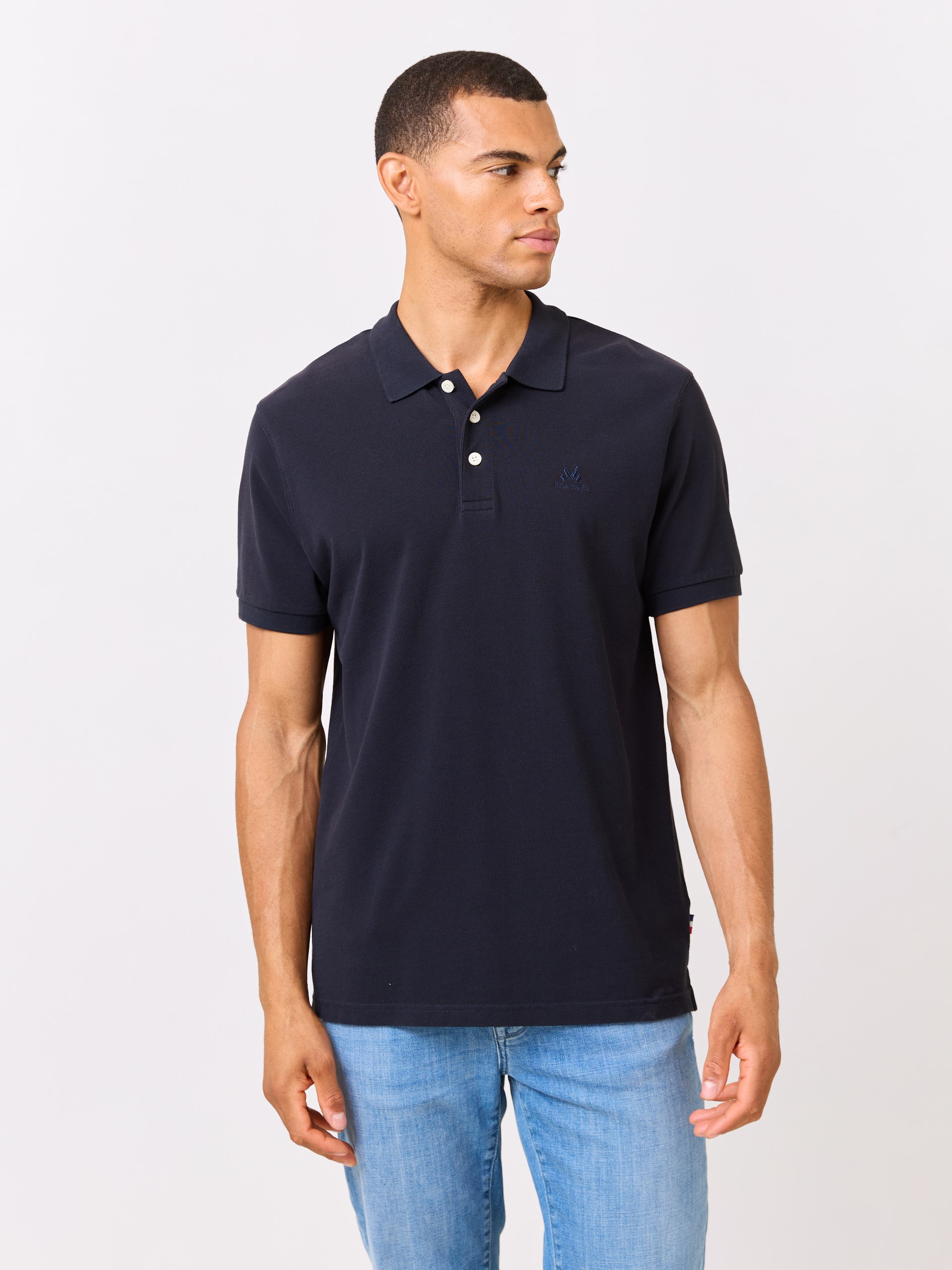 Klassisk piquetrøye med kontrast bånd i nakken og splitter i sidesømmene