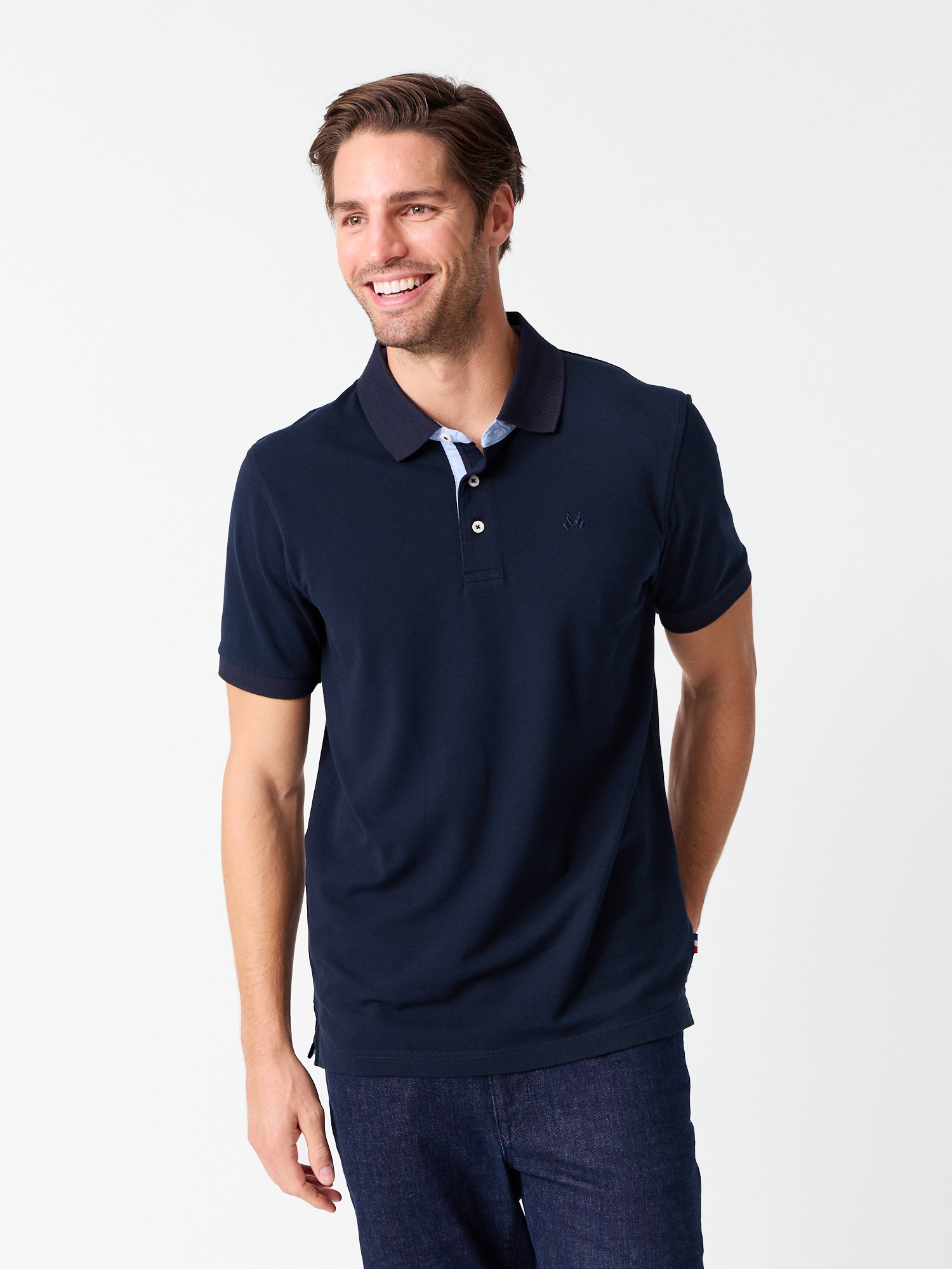 Klassisk pique med fine kontrastdetaljer og splitter i siden. Blå variant er ensfarget, og de andre er melert.