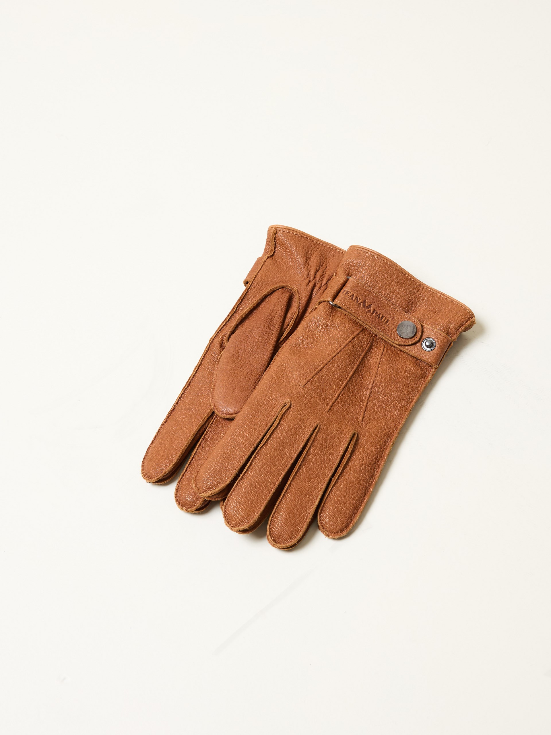 Eksklusiv skinnhanske i mykt hjorteskinn. med fôr i ull-cashmere. Hansken har detaljsømmer og en dekorativ justerbar rem med trykknapp på oversiden. Elastikk på undersiden.