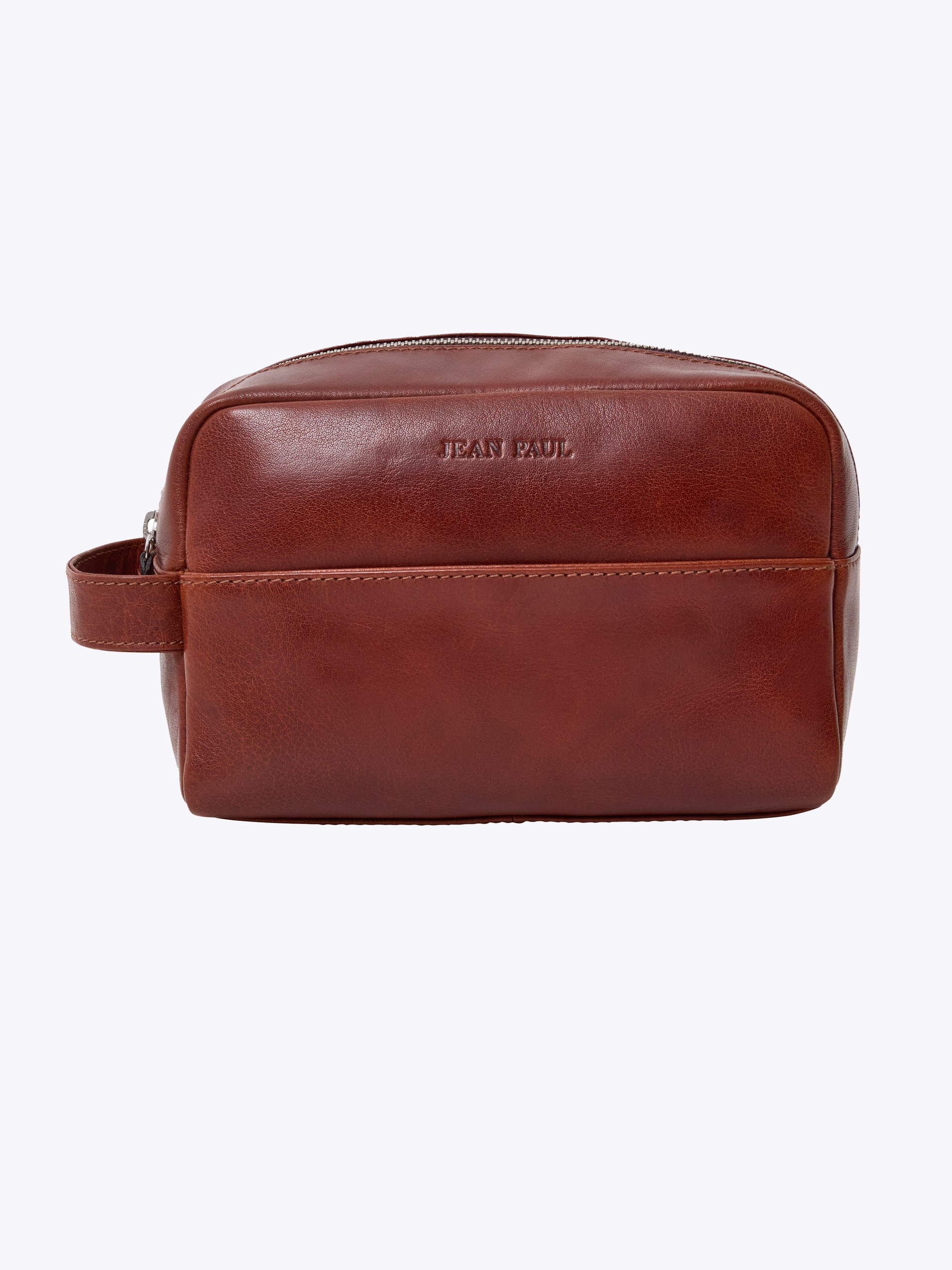 Toalettmappe i bøffelskinn med glidelåslukning, utvendig lomme med magnetlukning og tre innvendige lommer. Preget logo på siden og solid bærerem. Størrelse; 26 cm bred, 15 cm høy og 10 cm dyp
